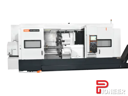 The HYPER QUADREX 400MY Multi-Tasking turning center brings high-volume throughput and heavy material removal to large-diameter part applications, including shafts and pipes. Its extreme performance capabilities are made possible via its twin-turret configuration, rotary milling capability, Y-axis off-centerline machining and integral motor/headstock with a large-diameter spindle bore.