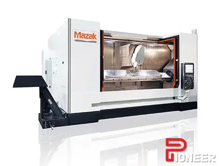 The VERTICAL TRAVELING COLUMN (VTC) 800/30 SDR Vertical Machining Center features a high speed 40 Taper spindle, swivel spindle head (B-axis), full traveling column design and two rotary tables for machining critical parts in the aerospace industry. The swivel head delivers improved accuracy and repeatability due to the backlash free design, which allows the machining of complex features and contours. A significant reduction of machining processes and increased productivity can be realized thanks to the additional axis. The dual synchronized rotary tables allow two separate work areas for full 5-axis simultaneous machining. The machine also delivers fast rapid traverse rates to reduce non-cut times.