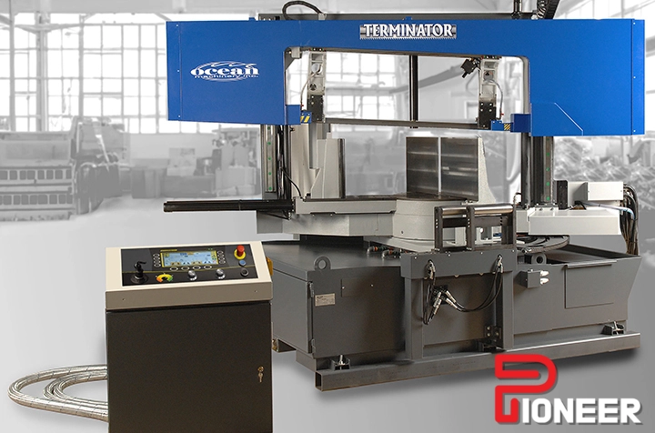 The Ocean Terminator 1825 Dual Column Dual Miter Band Saw is the newest of the Ocean Terminator range of band saws. It is specifically designed for structural steel fabricators to handle the larger beams and profiles, and the heaviest sections that structural steel fabricators cut on a daily basis.
